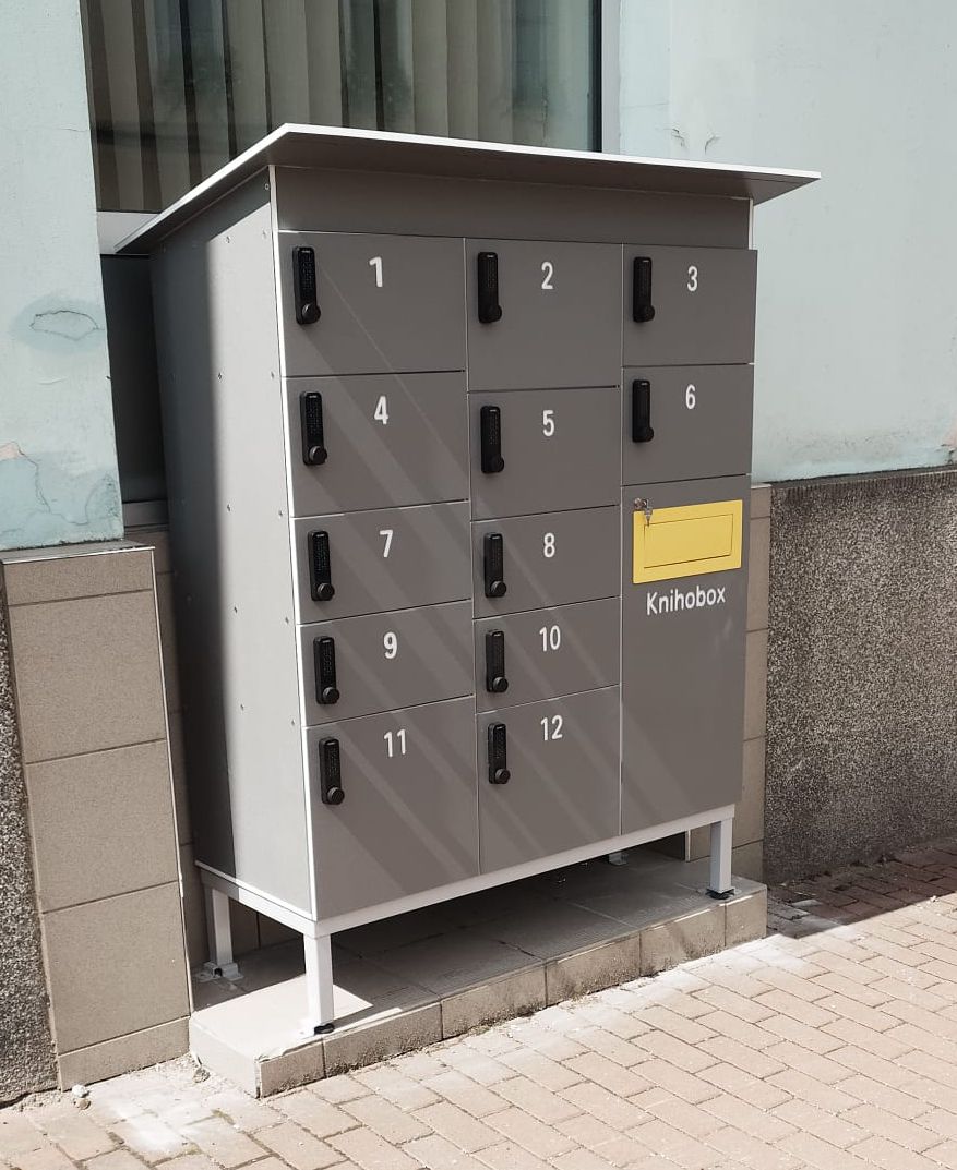 slouží k výpůjčce a vrácení knih v době uzavření knihovny. Otevření schránek se ovládá pomocí kódů přes zasílané SMS zprávy.