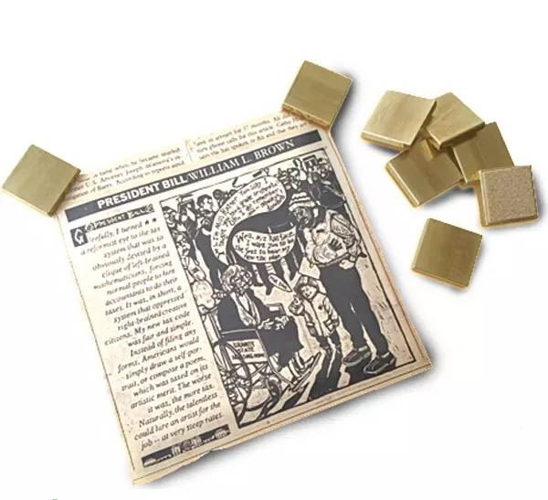 Závaží ve tvaru hada pro vystavení nebo prohlížení knih, plakátů, grafik a map.